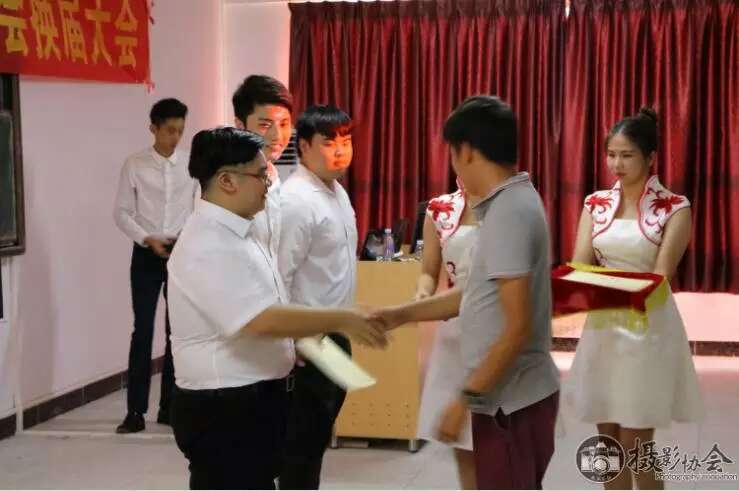 由主持人宣布换届大会正式开始,首先由社联15级新任主席团及新任部长、副部长上台领取聘任书,新的责任落到了他们的肩上,希望他们带领社联可以更好地发展。其次,补发上一届14级干部的聘书,回首过去一个学年,在大家的共同努力下,社联发展壮大起来,科学管理社团,荣获了一个又一个的荣誉,收获了汗水、泪水和成长。接下来是优秀社团的颁奖,分别有书画协会、读者协会、摄影协会、模特协会、舞蹈协会;再有,为30个优秀协会的积极分子颁奖,协会因他们的助力而精彩;最后为课室评比颁奖,参加课室评比并且荣获名次的有:书画协会荣获课室评比一等奖、读者协会荣获二等奖、歌唱协会荣获三等奖、模特协会和舞蹈协会荣获人气奖,感谢各个协会为图书馆6楼的课室装扮增添光彩。