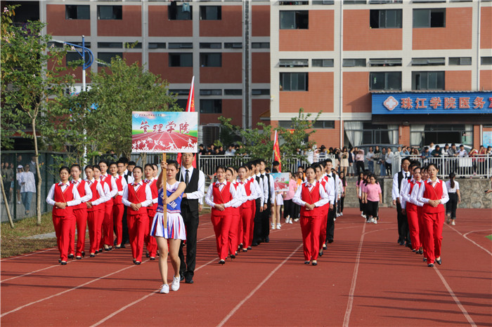 上午8:30,开幕式正式开始,国旗护卫队、校旗护卫队、彩旗方阵、表演方队及运动员方队依次入场。据悉,本届运动会增设了教职工比赛项目,连同学生运动员,共有40支队伍,近800人参加本届比赛。