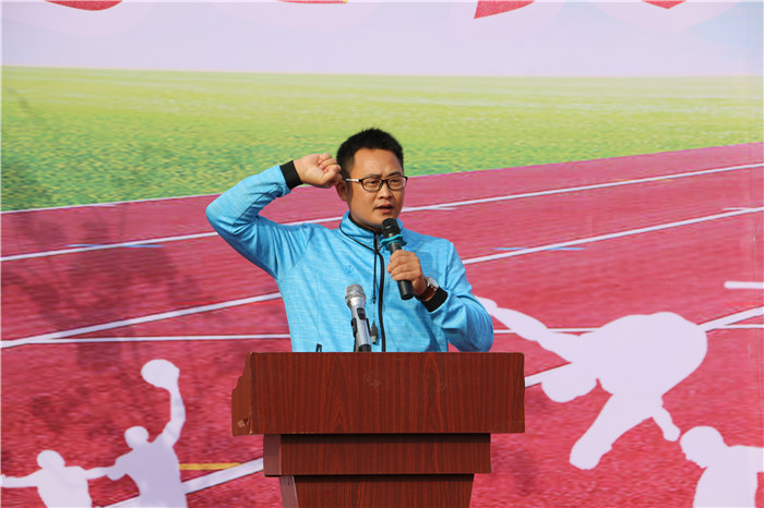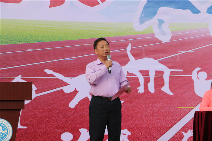 校党委书记、校长温博栋教授上台致辞。他指出,一年一度的大学生田径运动会,是我校贯彻“全面育人”教育思想的重要体现,近年来,学校在努力提高学生思想道德素质、发展学生智力、抓好教育教学质量的同时,积极响应国家关于开展体育运动的号召,始终把加强体育锻炼、增强学生体质,纳入学校教育纲要之中,注重发展学校体育事业,不断完善体育基础设施,不断强化体育教学,树立以人为本、健康第一的理念,开展了包括冬季运动会在内的丰富多彩的体育活动,实现了校园“育体”与学校“育人”的有机结合。最后,温校长对全体运动员寄予希望,希望全体运动员发扬“团结、友谊、进步”的精神,向着“更快、更高、更强”的目标,团结协作、顽强拼搏,全面展现蓬勃向上的时代风采,取得运动成绩与精神文明双丰收。