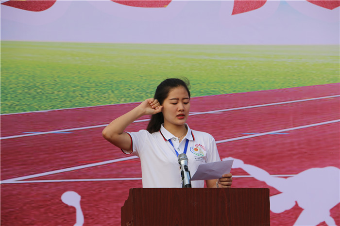 运动员代表张漪清、裁判员代表林文丰依次上台宣誓。最后,党委副书记、副校长夏连虎副教授宣布:广州珠江职业技术学院2018年冬季田径运动会开幕!